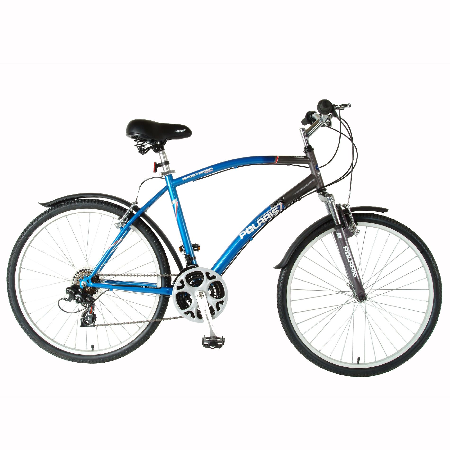 The Sportsman 26" Men's Comfort Bike features a steel comfort frame designed to give you a more upright riding position. With features such as a cushioned saddle and front suspension travel fork, this mountain bike softens the bumps to offer the most comfortable ride. This sturdy mountain bike is also available in a women's version. Features: -Sportsman comfort bike. -21 Speeds. -Steel comfort frame, 19". -Non-adjustable front suspension, 30mm travel fork. -Alloy wheels, 26" x 1.5". -Kenda Kwick all-terrain tires, 26" x 1.5". -Shimano twist shifters. -Shimano TZ31 front derailleur. -Shimano "tourney" rear derailleur. -Alloy / steel crank. -MTB type pedals. -Spring cushioned saddle. -Steel seat post, 25.4mm x 350mm. -Steel MTB handlebars, 50mm rise. -Steel stem. -Steel threaded headset, 1". -Rear linear pull brake.